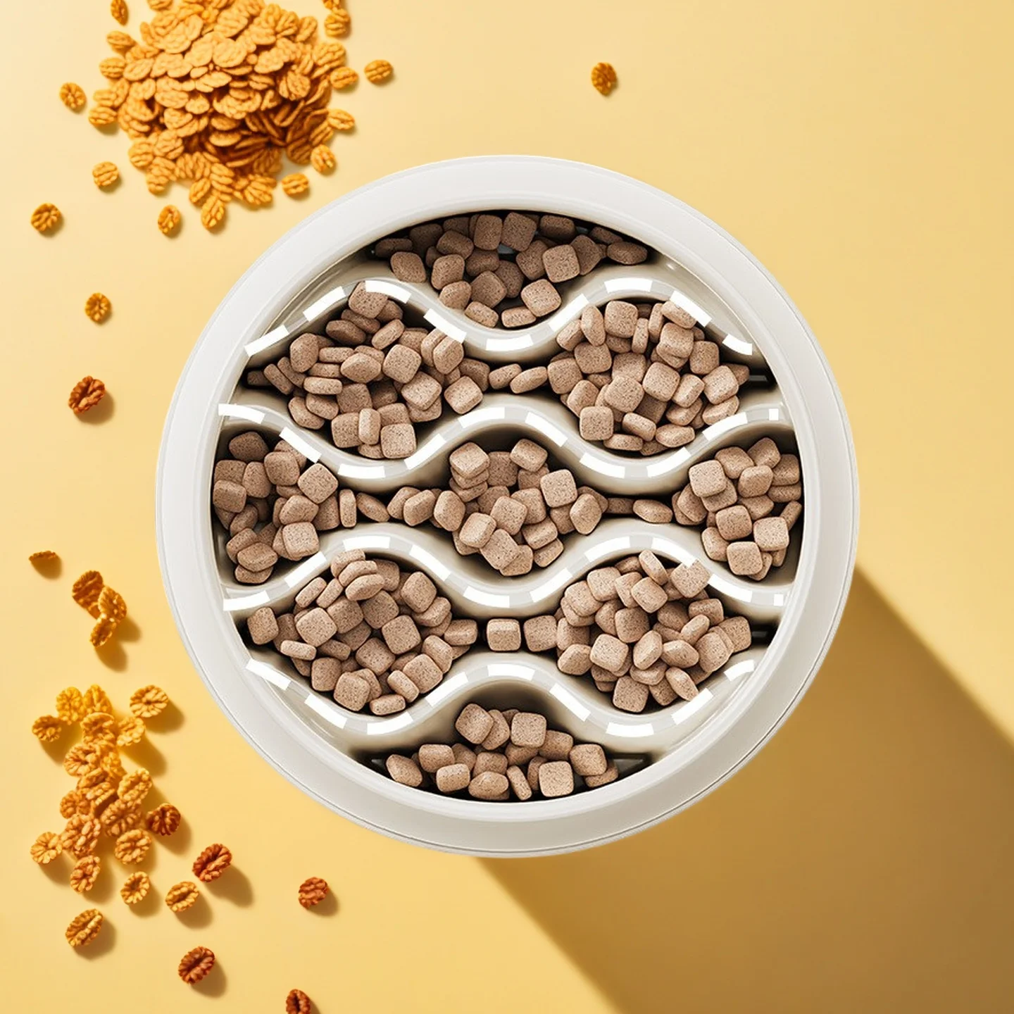 Fashion Slow-Feeder Cat Bowl Set: Anti-Splash Dual Dish - Thick PP Plastic for Mess-Free Eating & Choke Prevention